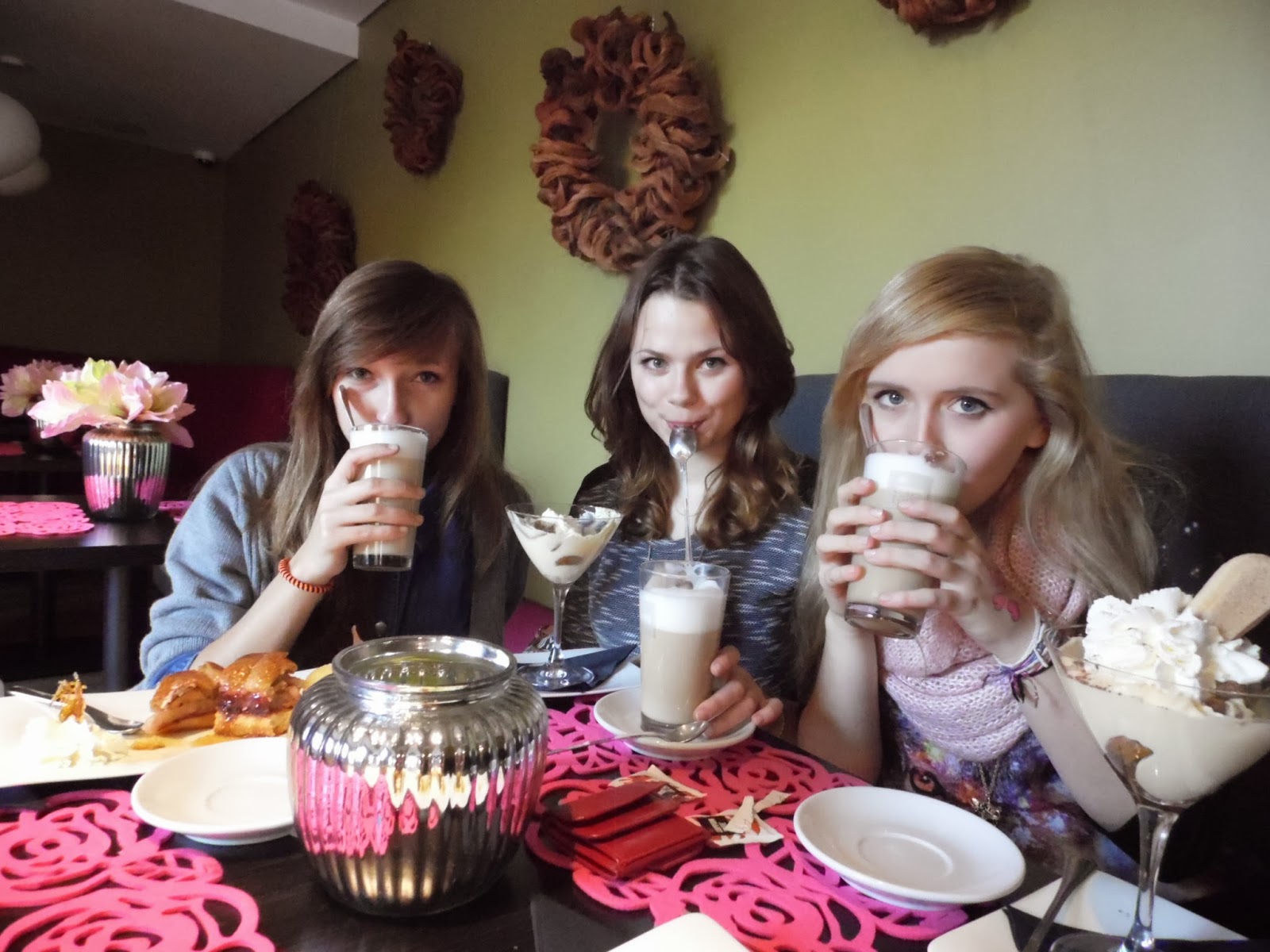 Cześć! dzisiaj były ajlepsze lekcje na świecie ! Tylko 30 minut lekcji 🙂 Wyszłam ze szkoły o 11 i od razu poszłyśmy do coffeina. Jednym słodem PRZYPAŁ. Grałyśmy w „prawdę lub wyzwanie” i Klaudia tańczyła z wieszakiem, hih ;] Ja musiałam zamoczyć końcówki włosów w zlewie pełnym wody do którego napluła Ola xD Zamówiłyśmy pyszną szarlotkę i tiramisu a do tego latte. Mmmmm <3 Klaudia z Patrycją pojechały do domu a ja z Olą i Adrianem staliśmy pod zsp i czekaliśmy na Bartka. Odwieźliśmy Ole, podjechaliśmy do nieobecnej w domu Patrycji i dom. Już go dzis nie zobaczę :c Macie plany na weekend ? 😀