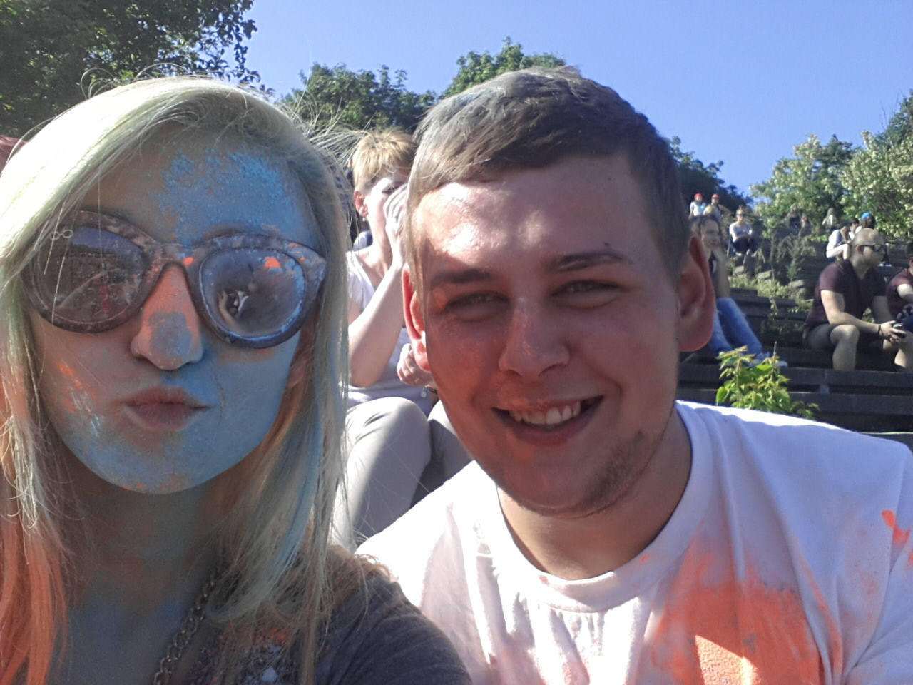 Kolor fest to tak naprawdę festiwal kolorów hucznie obchodzony w Indiach i nazywany „holi”. Impreza ta wyglądała na snapchat live niesamowicie! Patrząc na taką imprezę każdy chciałby się na niej znaleźć. Kolor fest jak na pierwszą imprezę holi spisali się dobrze. Kolejka (ok 300 osób) weszła przez bramki w jakieś 15 minut + wygrałam wejściówkę! Zakup pierwszych farb był niemałym problemem, ale ja znów stałam jakieś 15 minut. Zorganizowano ciekawe przekąski, napoje. Chętni mogli tańczyć zumbę, słuchać muzyki i tańczyć. Niedaleko sceny było wzniesienie, z którego widok był doskonały. Jestem bardzo zadowolona! Na pewno wybiorę sie na to jeszcze raz, niebawem 😉 Następna fotorelacja będzie raczej z Torunia!