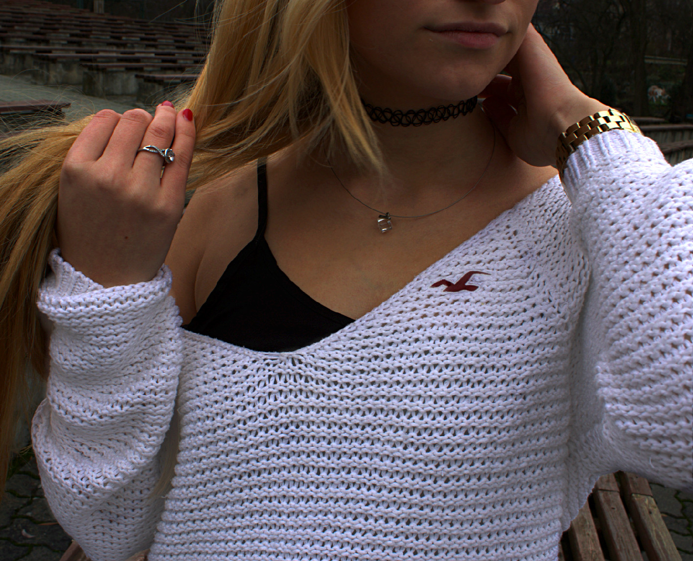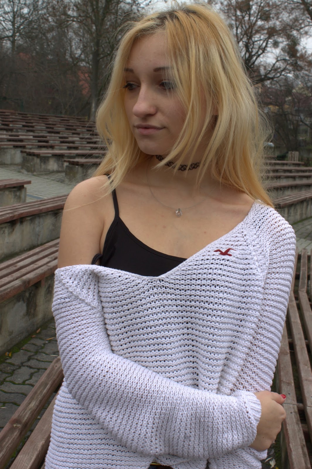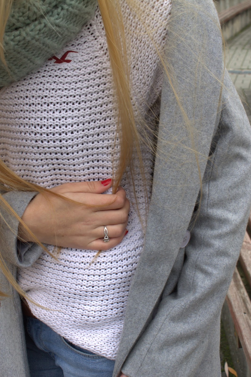|Coat – KLIK | Sweater – Hollister | Bra – Hunkemöller | Jeans – Denim Co | Scarf – River Island | Choker – Cropp | Belt – Calvin Klein | Shoes – Nike Air Max 90 | Jewelry – Apart |