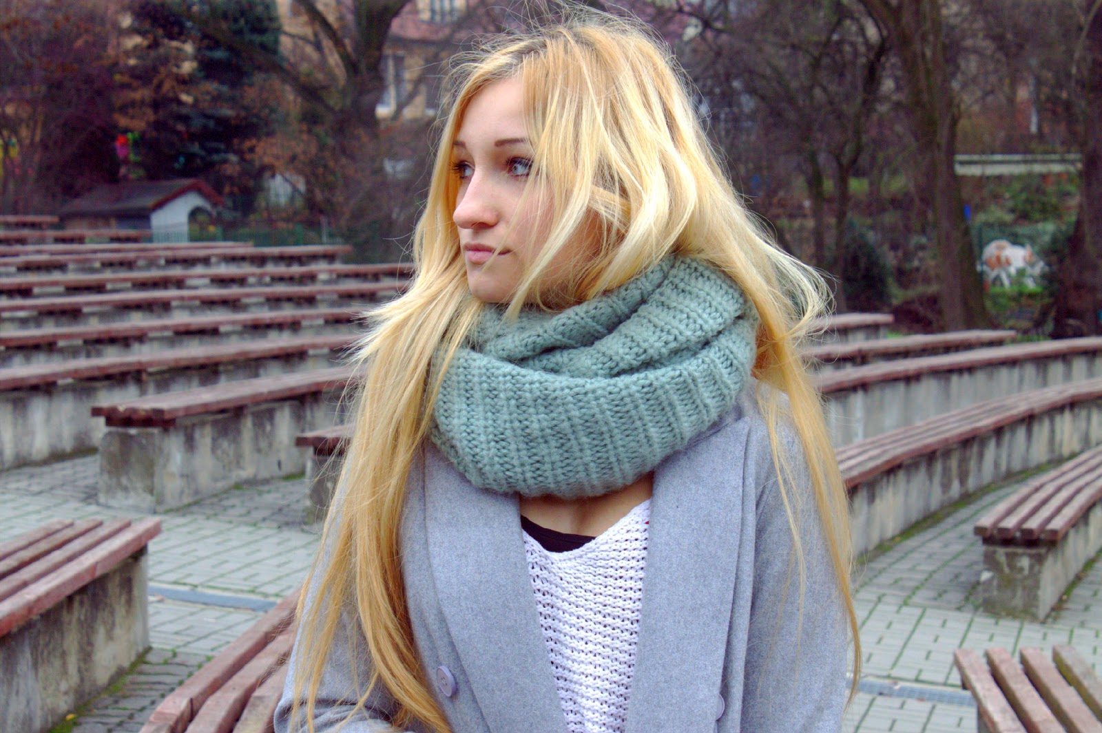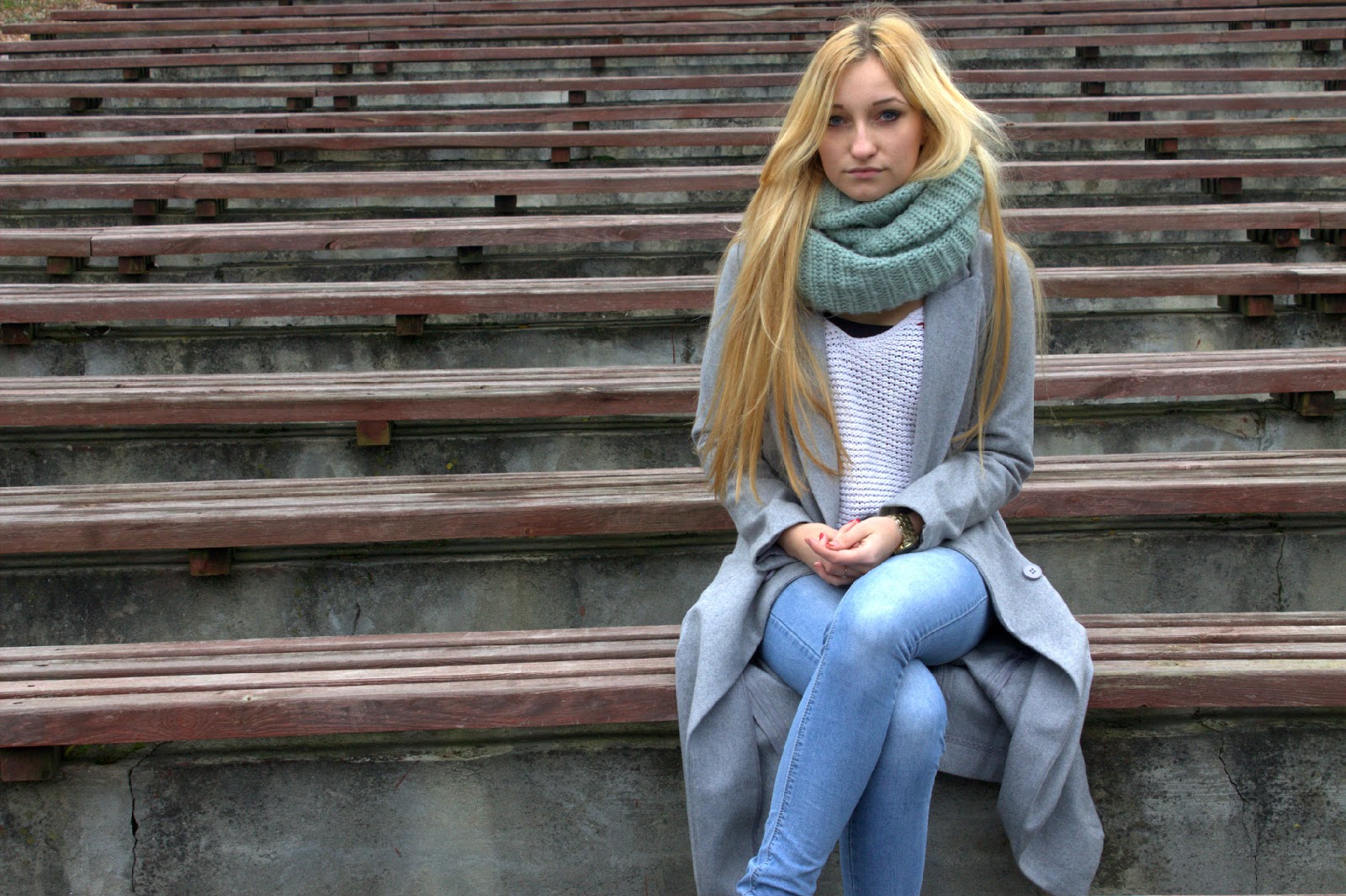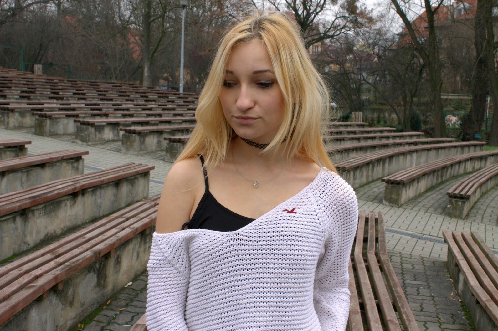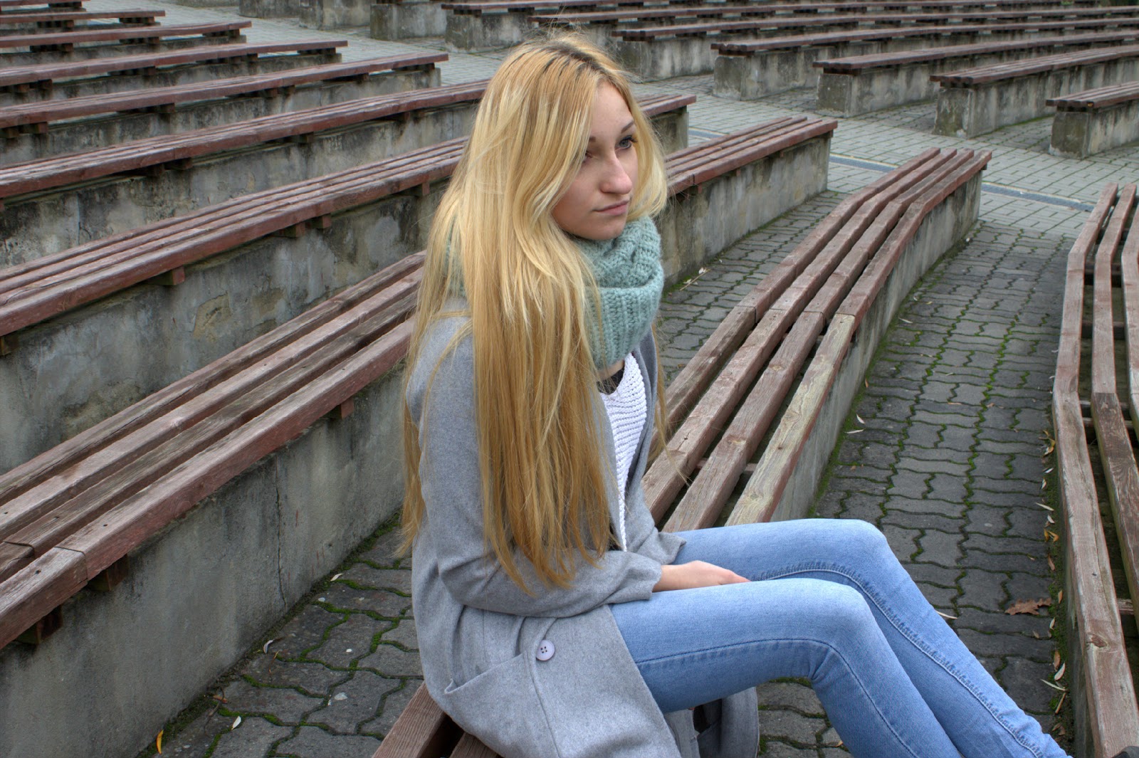 |Coat – KLIK | Sweater – Hollister | Bra – Hunkemöller | Jeans – Denim Co | Scarf – River Island | Choker – Cropp | Belt – Calvin Klein | Shoes – Nike Air Max 90 | Jewelry – Apart |
