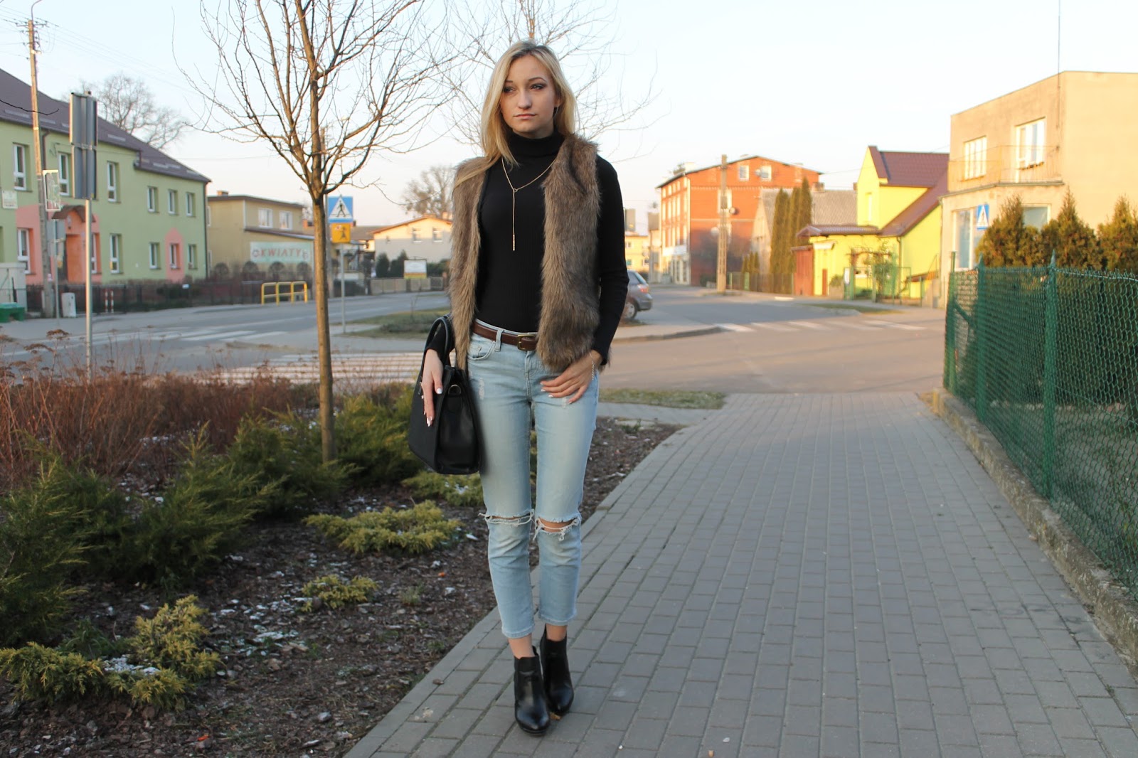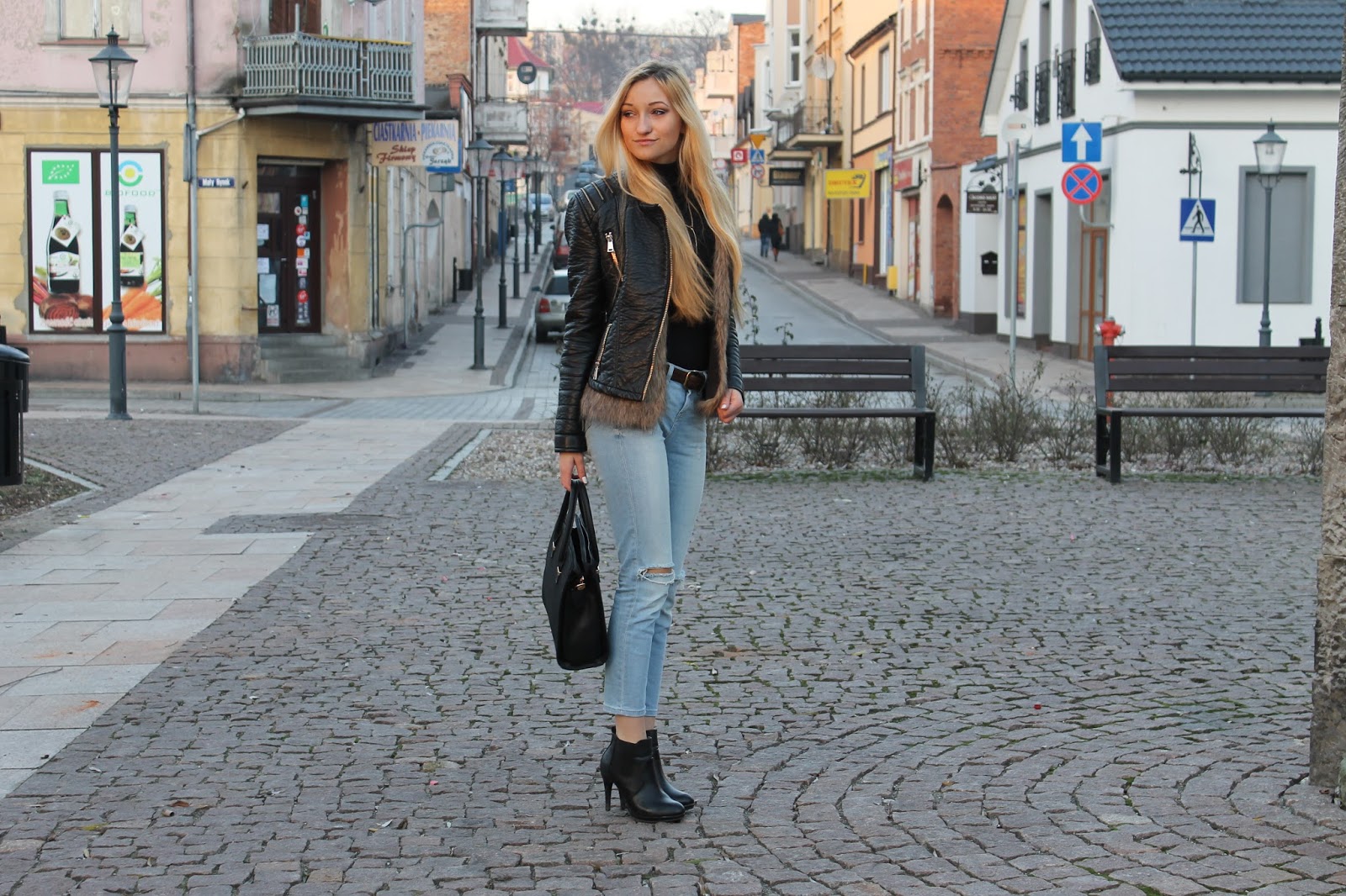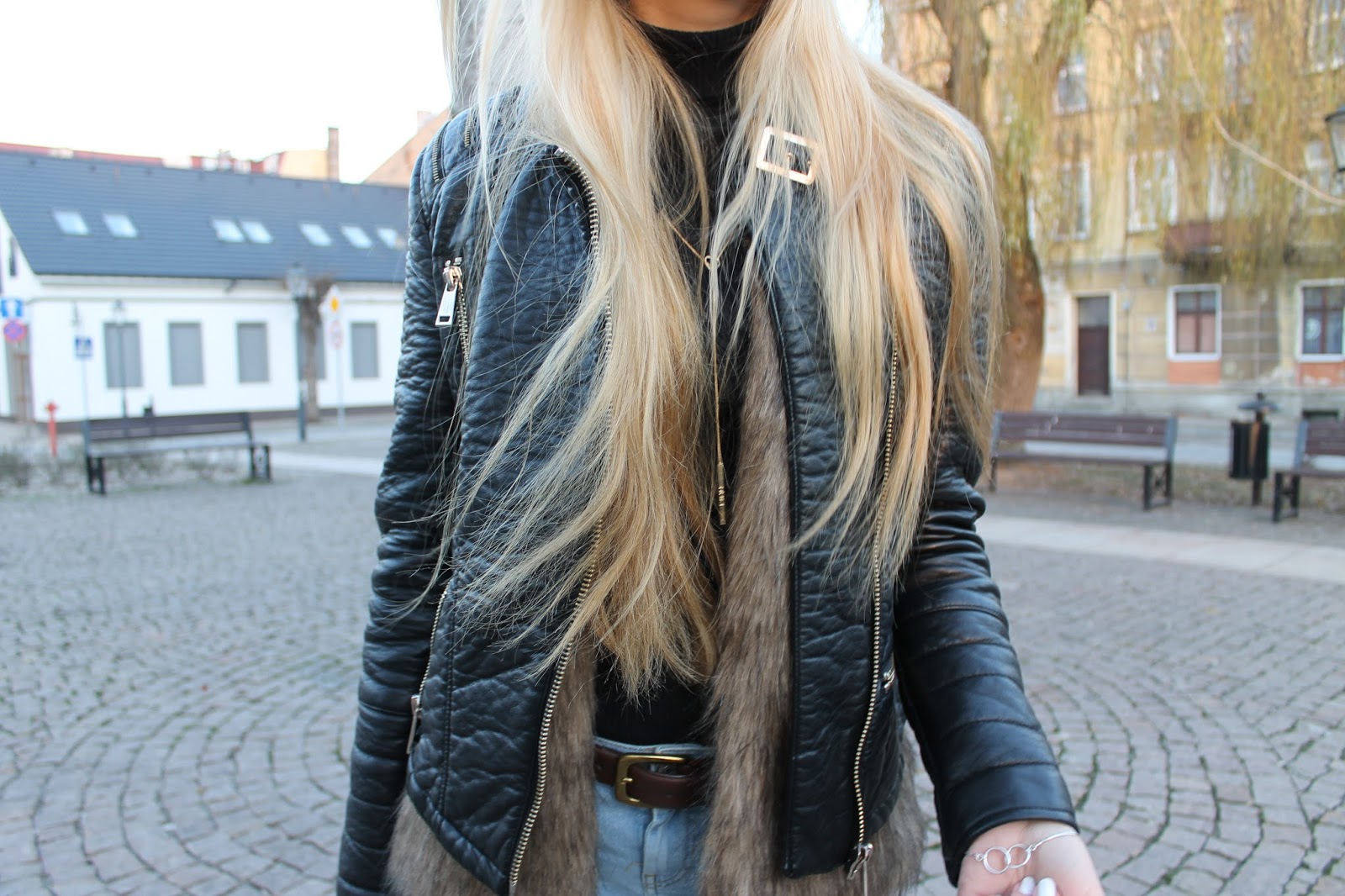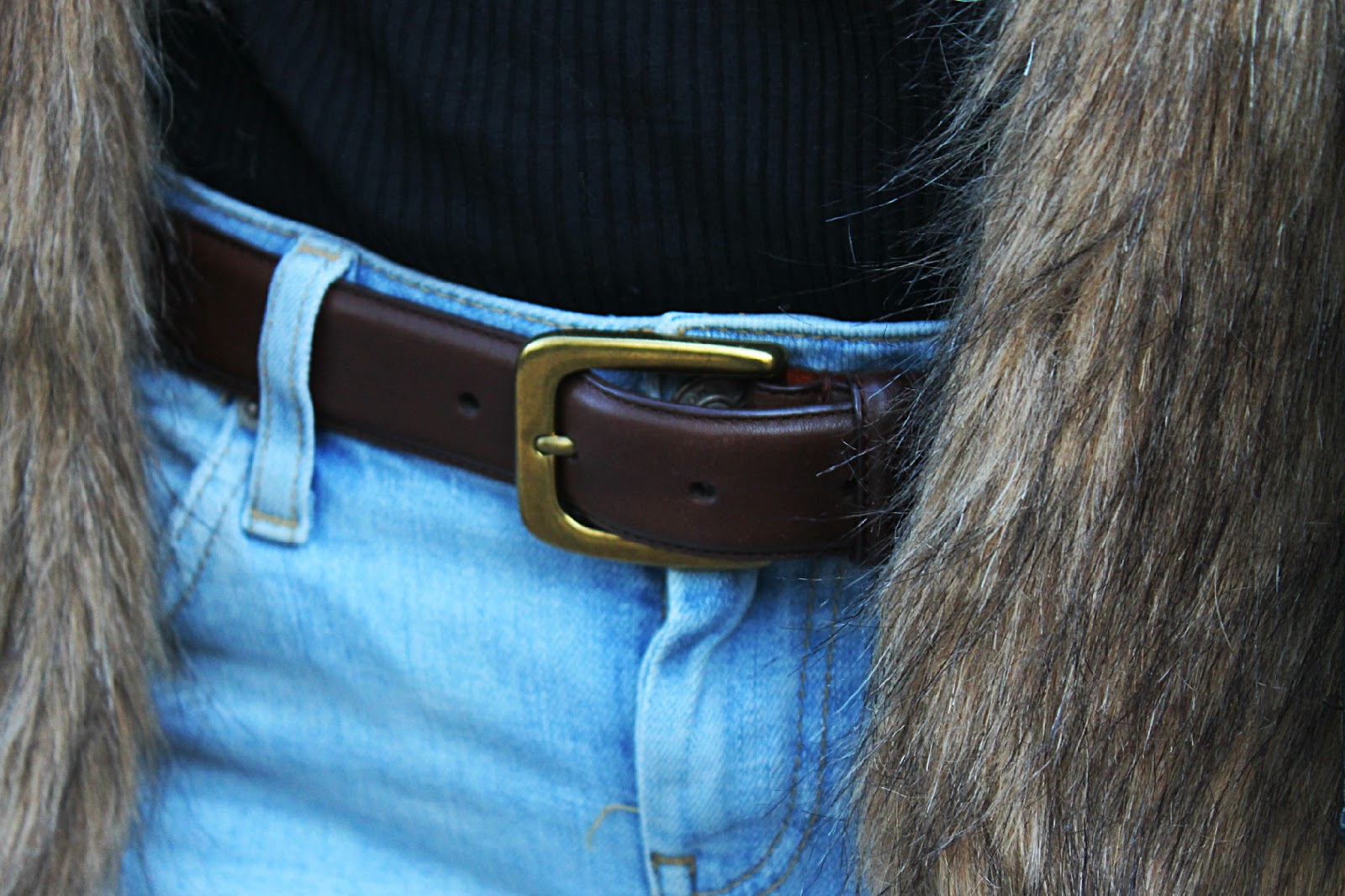| Fur – Here | Coat – New Yorker | Turtleneck – George | Jeans – Topshop | Bag – Versiti Butik | Shoes – DeeZee | Ring – Apart | Bracelet – W. Kruk |