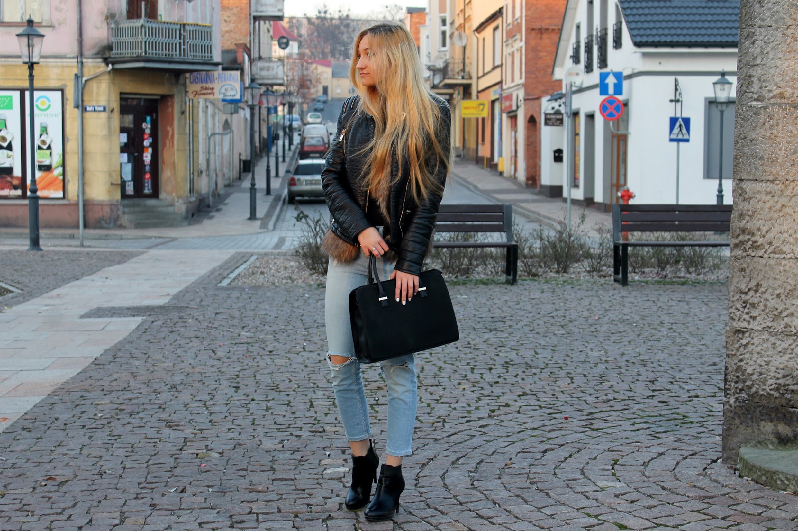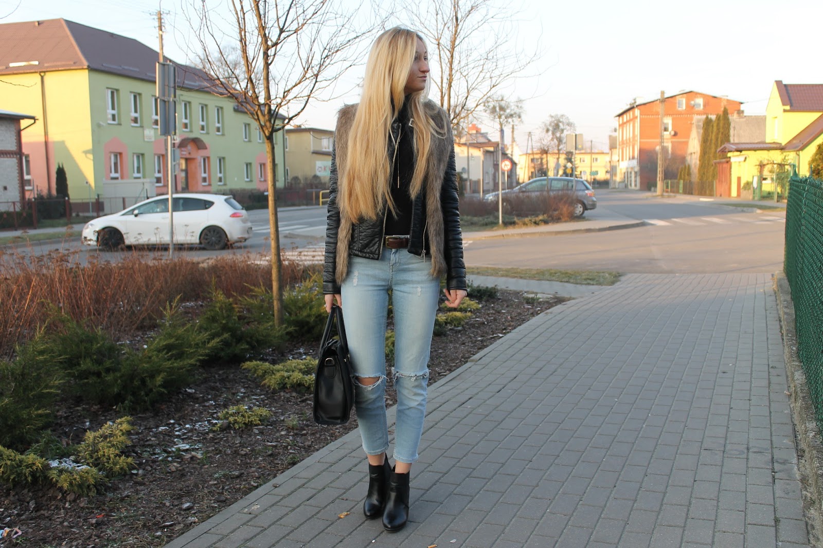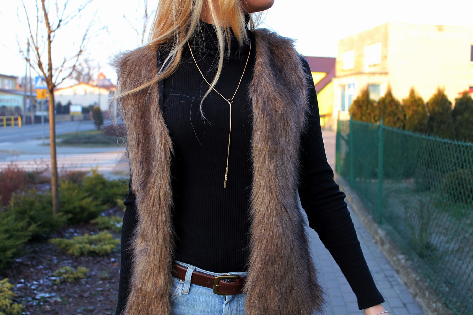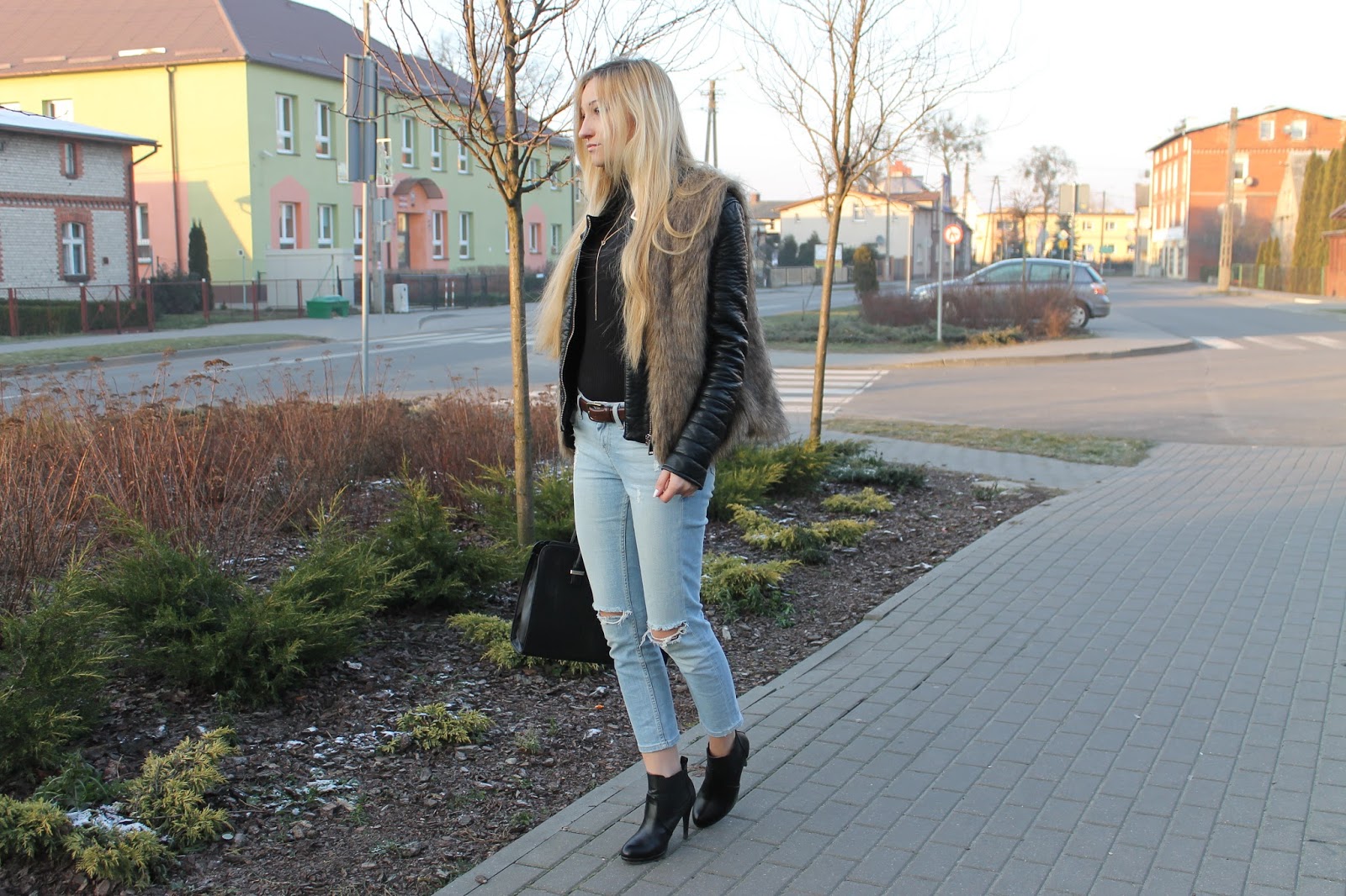 | Fur – Here | Coat – New Yorker | Turtleneck – George | Jeans – Topshop | Bag – Versiti Butik | Shoes – DeeZee | Ring – Apart | Bracelet – W. Kruk |