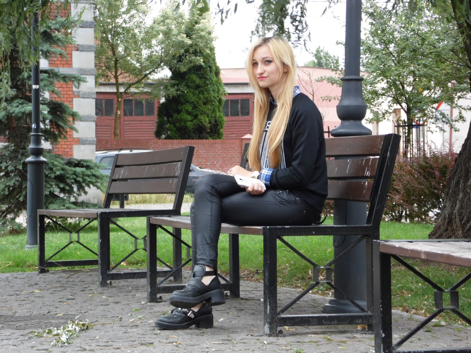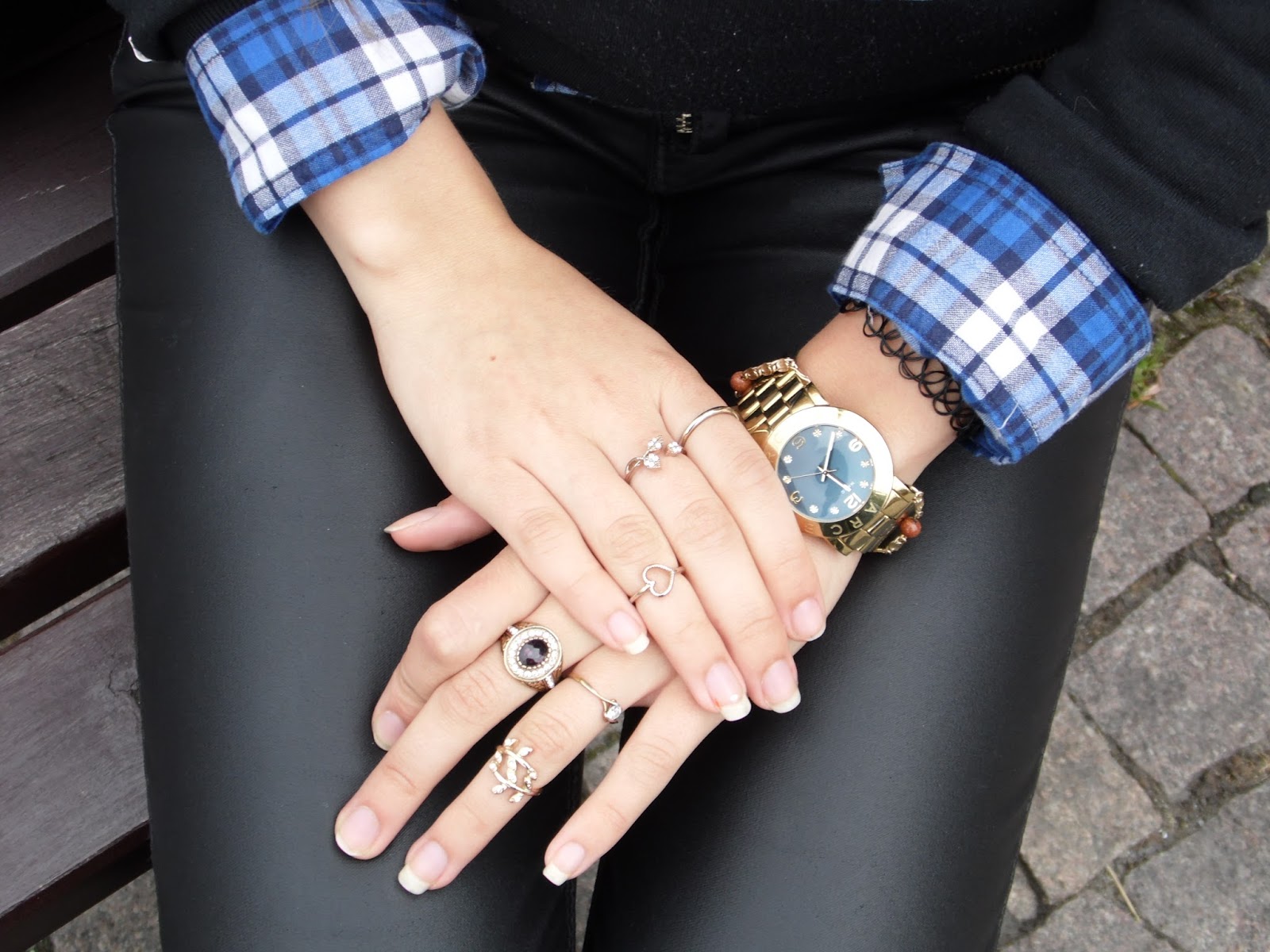 | Sweater – Atmosphere | Shirt – Atmosphere | Jeans – Komoda | Shoes – River Island | Bag – Gift | Rings – Claire’s | Watch – Marc Jacobs |